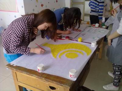 活动现场心协的参赛选手,在走廊里专心致志的画着自己的作品。虽然绘图的工具很简单,但是同学们的创意灵感并不因此而缺少了色彩,一幅幅简单但不失绿色感性的作品在两个小时内成功完成。最后,一等奖桂冠被咨询部的李东娇和秦雪梅两位同学,以“我快乐我环保”为主题的海报作品拿走。