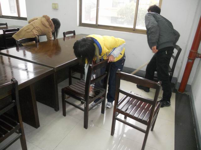 在这次活动中最能体现的就是团队合作的力量,院心协与读书协会进行了巧妙的分工,在不到一小时的时间里把图书馆一楼和二楼打扫的干干净净。特别是在二楼的阅览室里,心协成员和读书协会成员不怕脏不怕累,把桌椅、板凳、地板擦的干干净净、摆放的整整齐齐,为本校师生营造了一个洁净舒心的读书环境。