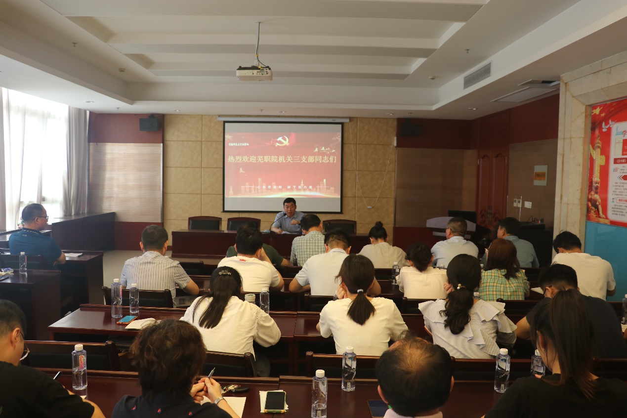 最后,孙晓雷以党的“巡视制度”为专题,结合自己巡视工作经验,从巡视制度的形成过程、具体内容、运作方式、基本作用等四个方面给全体党员同志上了一堂生动而富有教育意义的党课。孙晓雷深入浅出的讲解剖析,使在场党员对巡视、巡察工作有了更深入的了解、更深刻的认识。就“新时代党员如何强化责任担当”,孙晓雷还与支部党员进行了互动交流。他指出:作为共产党员应牢记人民嘱托,职责重于泰山!必须加强政治修养,在大是大非问题上敢于担当;应对矛盾敢于迎难而上,攻坚克难;工作中向优秀共产党员看齐,多实践、多调研;作为学校重要的业务职能部门,第三支部的党员要不断加强政治理论学习和业务学习,把习近平新时代中国特色社会主义思想,特别是习近平总书记关于职业教育重要论述和指示精神运用到实际工作中,聚焦“类型教育”和立德树人根本任务,为推动学校内涵式发展而努力工作。