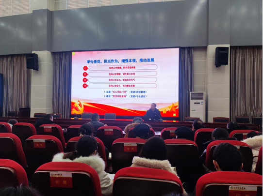 按照学校主题教育工作任务安排表,2023年12月20日下午,职业师范学院党政负责人夏效祥讲授主题教育专题党课。学院全体党员、中层以上干部及各教研室负责人参加了党课学习。