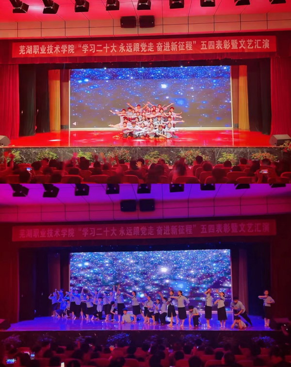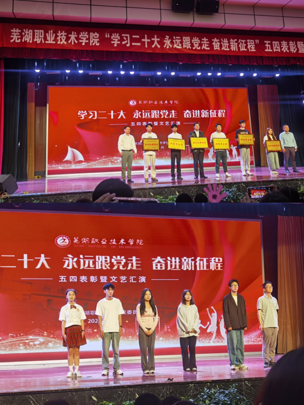 为深入学习宣传贯彻党的二十大精神,大力弘扬“五四”精神,5月17日下午,芜湖职业技术学院在文津校区大礼堂举行“学习二十大 永远跟党走 奋进新征程”“ 五四”表彰暨文艺汇演。我院党委负责人夏效祥、行政负责人邬余俊受邀出席,部分学生代表和团委工作人员参加了本次活动,共享青春盛会。