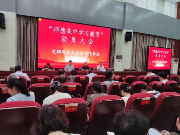 筹备组成员张学平就师德集中学习教育进行了动员。他从为什么要学、学什么、怎么学三个方面向在场教职工提出了师德师风建设的具体要求,并带领大家共同学习了《芜职院职业技术师范学院“师德集中学习教育”实施方案》。他指出,全体教师要沉下心来认真学习,筑牢为党育人、为国育才初心使命。