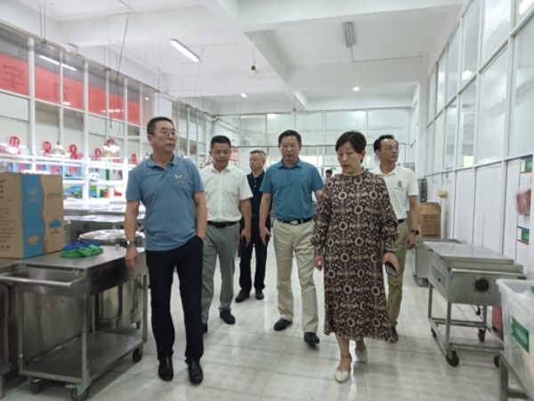 刘育红一行深入到白马校区学生食堂、学生宿舍、教室、功能室、附属幼儿园、校区内水域等点位查看设施、设备、环境,就校园安全、食品卫生、综合管理服务、人员到岗、公共场所环境等情况进行实地实情了解。