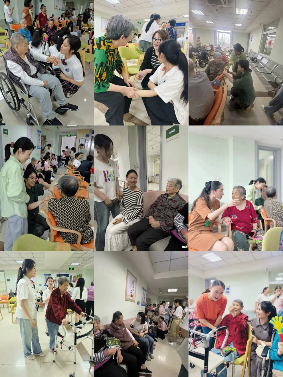 表演结束后,党员教师和学生志愿者们围坐在老人身旁,开启“聊天时光”。大家耐心倾听老人讲述过往,分享生活趣事,细心询问身体与生活状况,有的为老人揉肩捶背,有的陪老人翻看照片,温馨互动让颐养院满是暖意。老人拉着志愿者的手感慨:“孩子们的节目好看,陪我们唠嗑也贴心,真的太高兴啦!”学生志愿者也表示,参与活动收获满满,深刻懂得关爱老人的意义,未来愿常伴温暖。