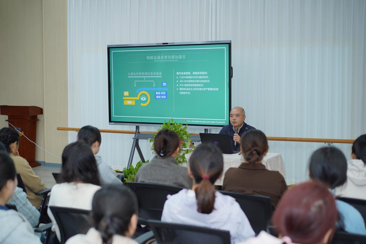 翟光富以“学前阶段近视防控指引”为核心,借助生动直观的PPT演示,从儿童视觉发育的生理特点切入,系统阐释了远视储备量对幼儿视力健康的关键作用,深入剖析了学前阶段近视的成因与潜在危害,并针对性地讲解了家庭与幼儿园协同落实的科学防控方案。内容既兼顾专业性又贴合日常育儿实际,让家长们深刻认识到0-6岁作为儿童视觉发育黄金期与近视防控关键期的核心意义,更清晰掌握了户外活动拓展、电子产品管控、睡眠营养保障、定期视力筛查等综合干预措施的实施要点。