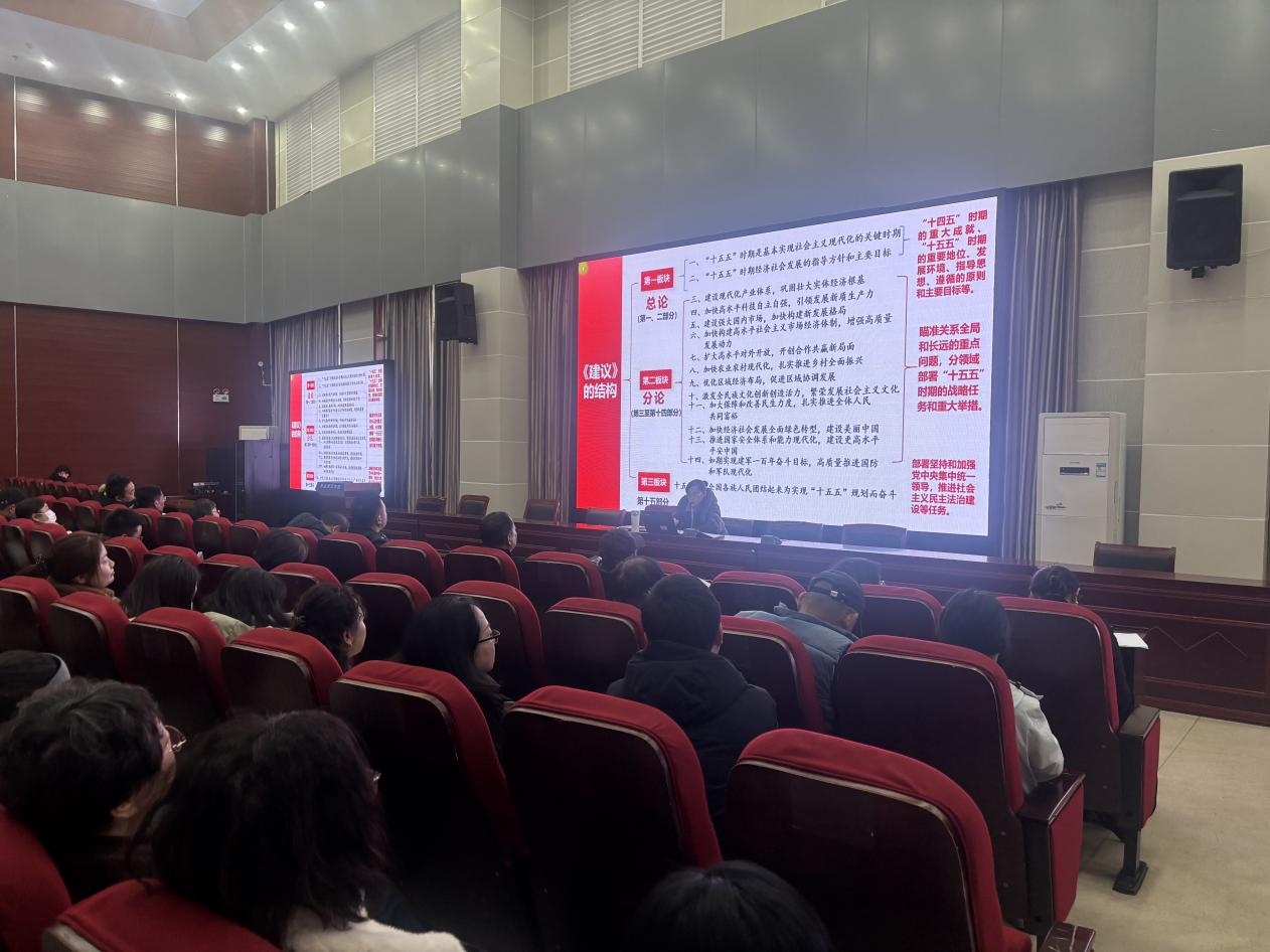 12月31日下午,职业师范学院在德正楼一楼报告厅举行《习近平谈治国理政》第五卷及党的二十届四中全会精神专题宣讲会。宣讲会由学院党委副书记、院长娄洁主讲,全体在职党员、副科级以上干部及附幼党支部支委、党小组长参加学习。